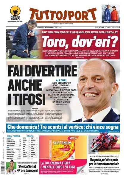 PRIMA PAGINA TUTTOSPORT - Allegri, fai divertire anche i tifosi