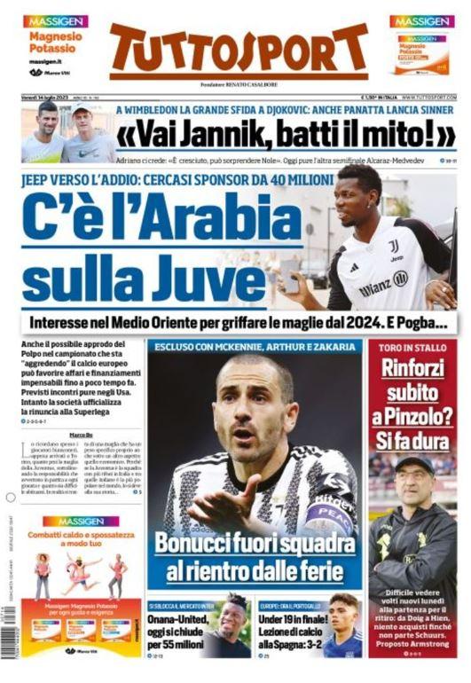 PRIMA PAGINA TUTTOSPORT - C'è l'Arabia sulla Juve
