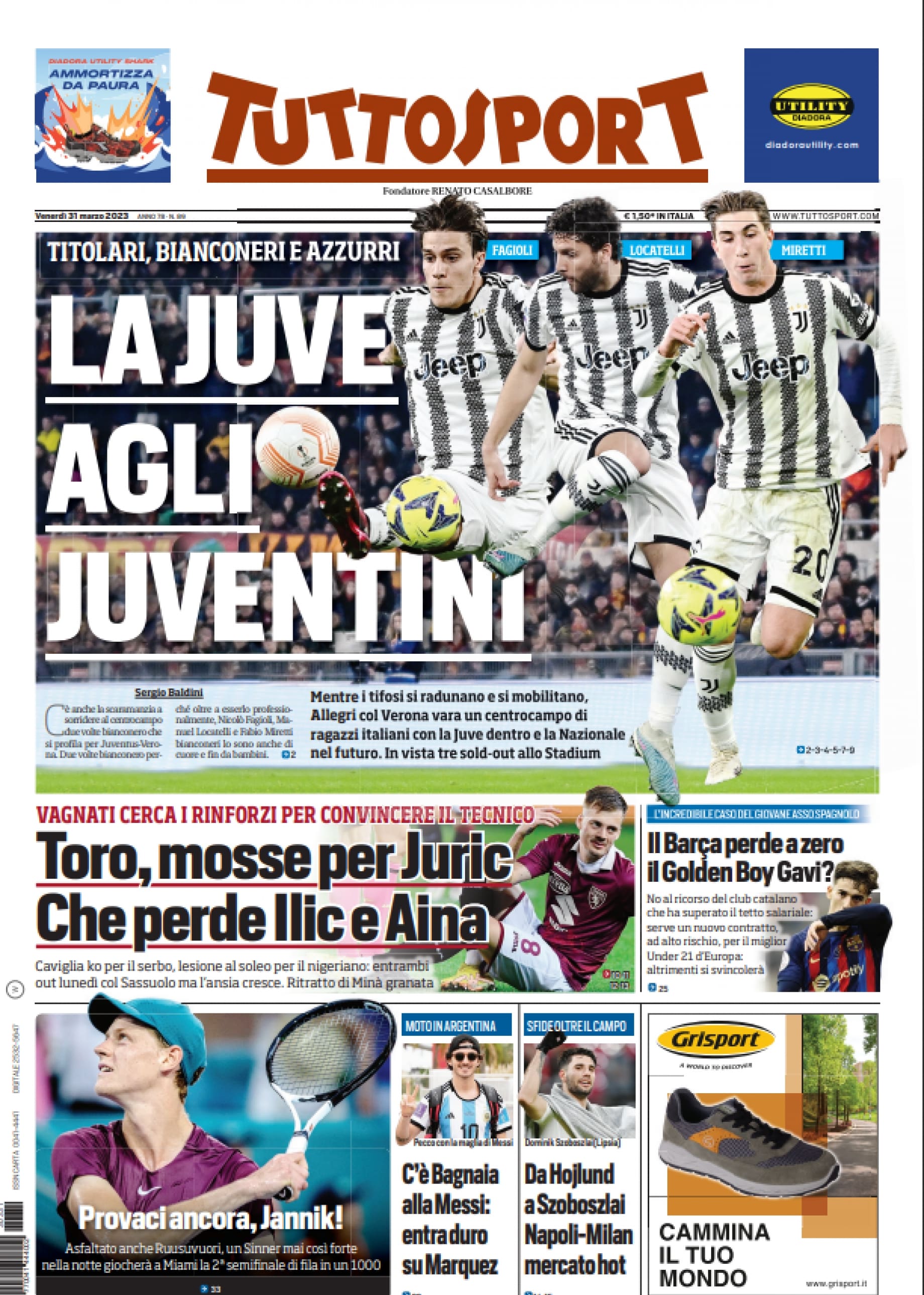 Sono tanti gli spunti che arrivano dalla prima pagina di Tuttosport. Il noto quotidiano si sofferma su alcuni degli argomenti più caldi del momento. Ecco alcuni titoli dell'ultima edizione: "Da Hojlund a Szoboszlai: Napoli-Milan, mercato hot. Sfide oltre il campo". E ancora: "La Juve agli juventini".
