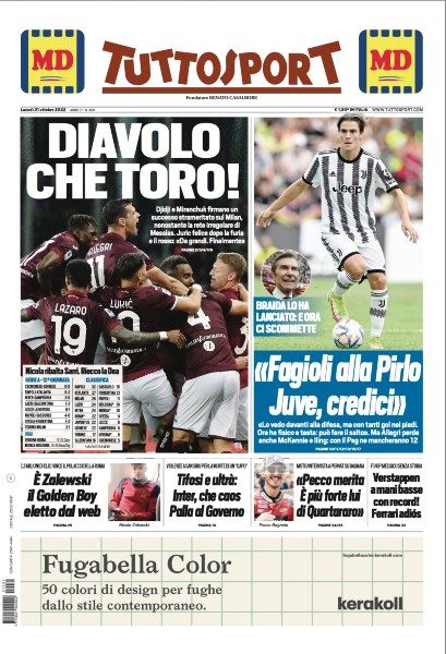 Sono tanti gli spunti che arrivano dalla prima pagina di Tuttosport. Il noto quotidiano si sofferma su alcuni degli argomenti più caldi del momento. Ecco alcuni titoli dell'ultima edizione: "Diavolo che Toro! Djidji e Miranchuk firmano un successo strameritato sul Milan".