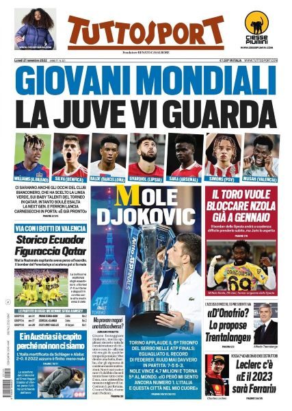 PRIMA PAGINA TUTTOSPORT - Giovani mondiali, la Juve vi guarda