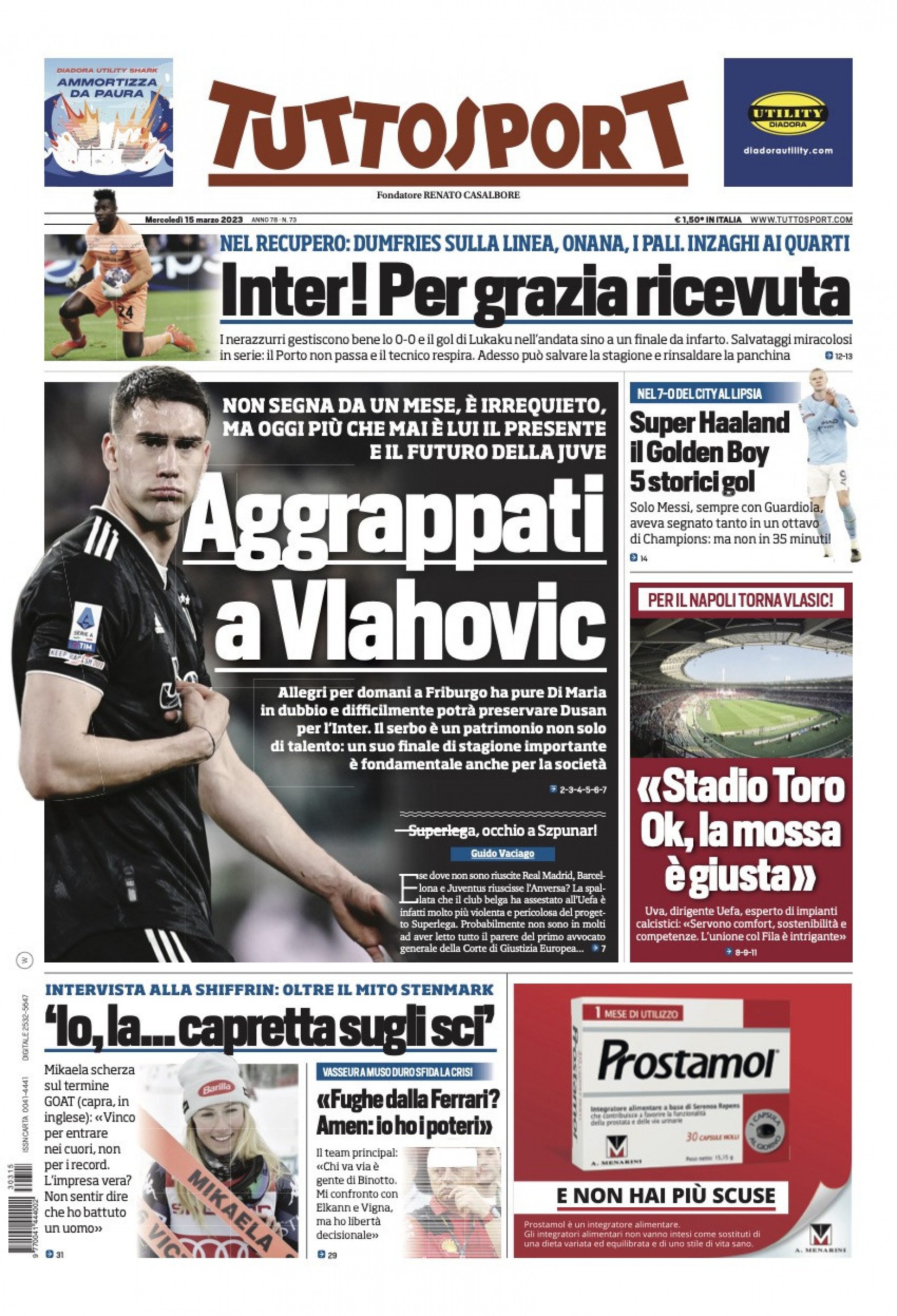 PRIMA PAGINA TUTTOSPORT - Inter ai Quarti per grazia ricevuta