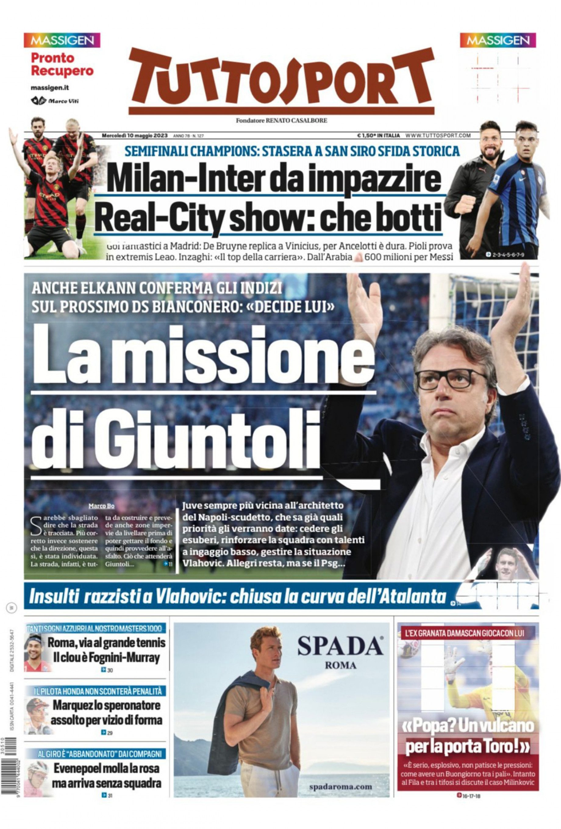 PRIMA PAGINA TUTTOSPORT - Juventus, la missione di Giuntoli