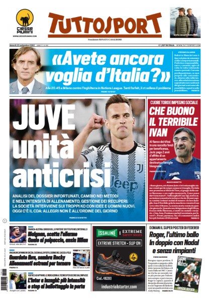 PRIMA PAGINA TUTTOSPORT - Juventus, unità anticrisi