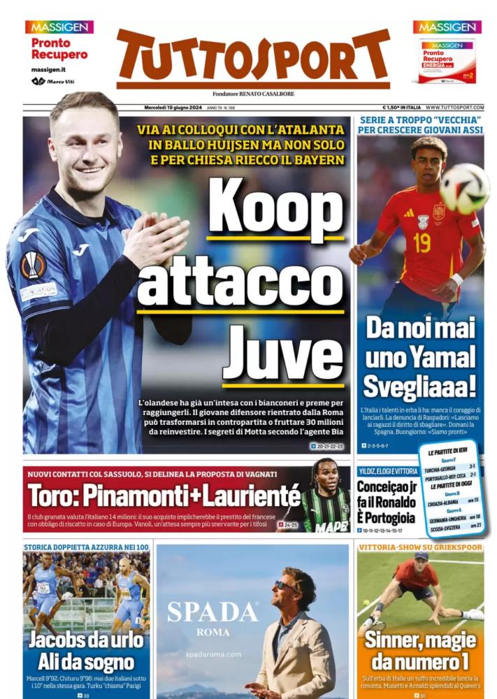 PRIMA PAGINA TUTTOSPORT - Koop, attacco Juve