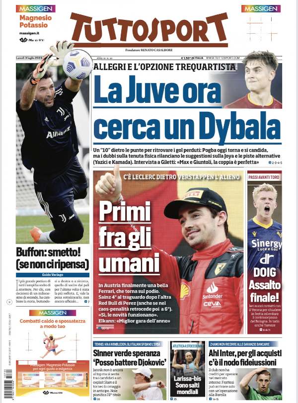 PRIMA PAGINA TUTTOSPORT - La Juve cerca un Dybala. Giletti: "Max e Giuntoli, coppia perfetta"