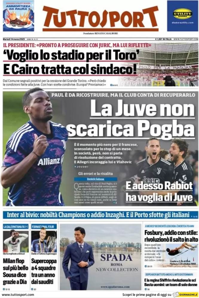 PRIMA PAGINA TUTTOSPORT - La Juve non scarica Pogba. Supercoppa a 4 squadre