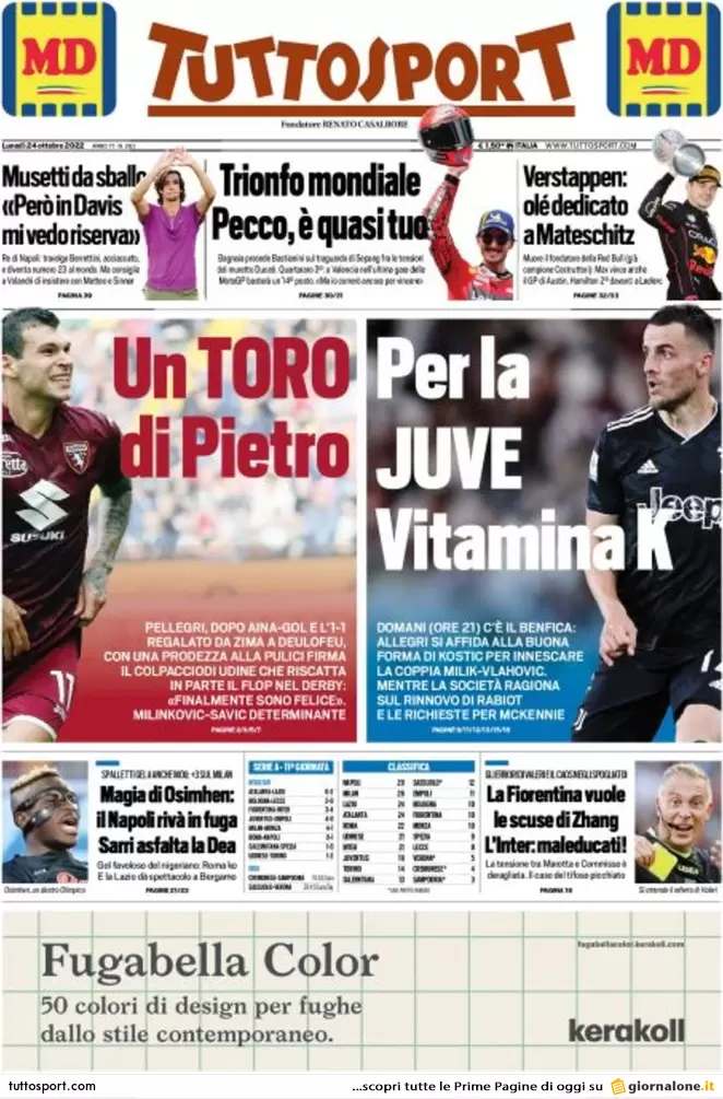Sono tanti gli spunti che arrivano dalla prima pagina di Tuttosport. Il noto quotidiano si sofferma su alcuni degli argomenti più caldi del momento. Ecco alcuni titoli dell'ultima edizione: "Magia di Osimhen, il Napoli rivà in fuga. Sarri asfalta la Dea".