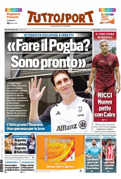 PRIMA PAGINA TUTTOSPORT - Miretti: "Fare il Pogba? Sono pronto"