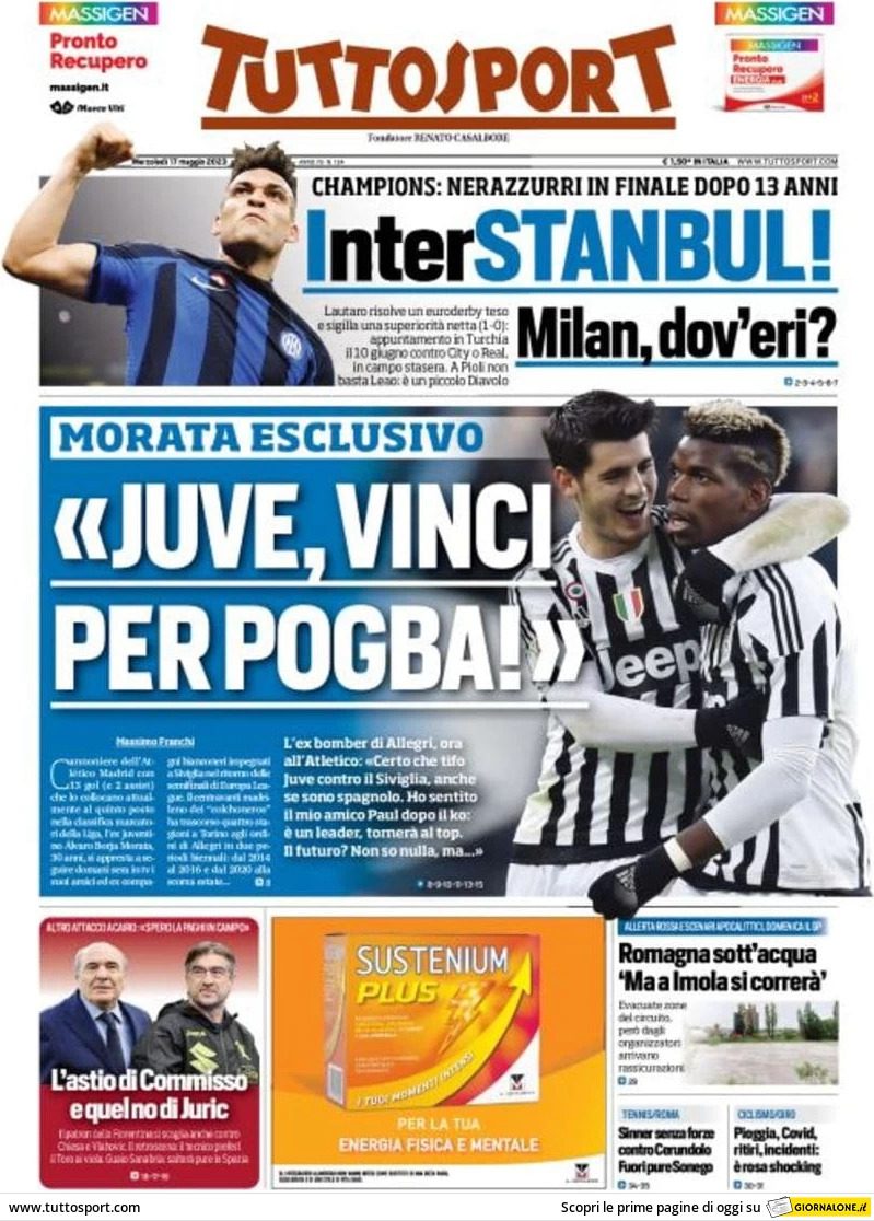 PRIMA PAGINA TUTTOSPORT - Morata: "Juve, vinci per Pogba"