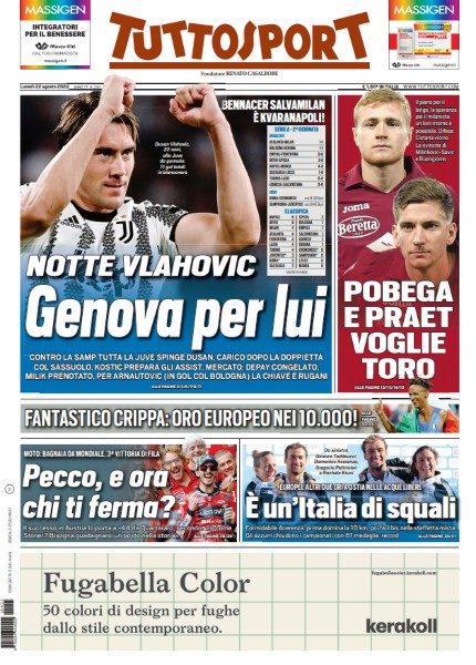 PRIMA PAGINA TUTTOSPORT - Notte Vlahovic, Genova per lui