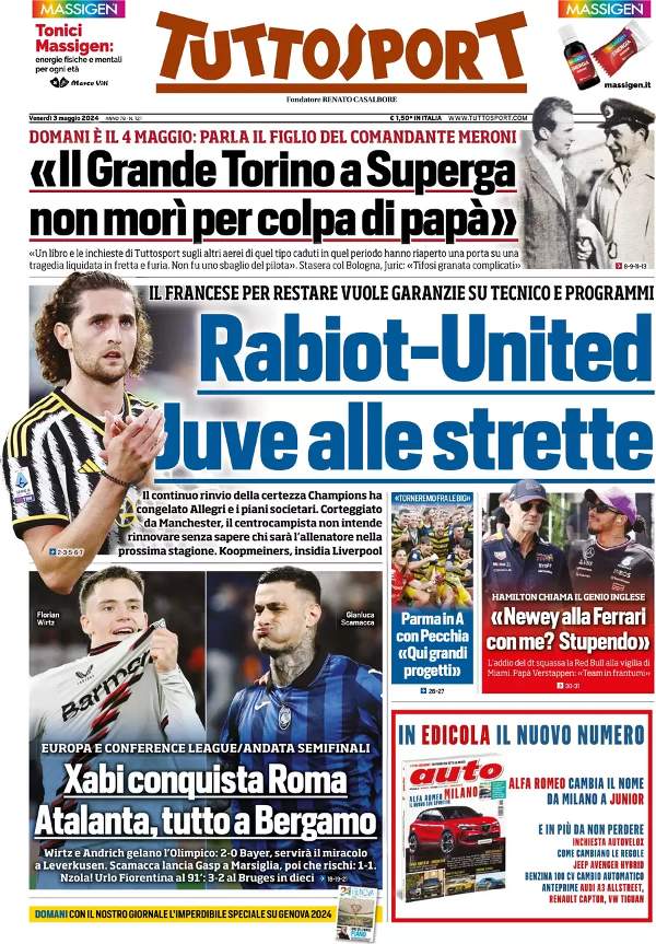 PRIMA PAGINA TUTTOSPORT - Rabiot-United, Juve alle strette