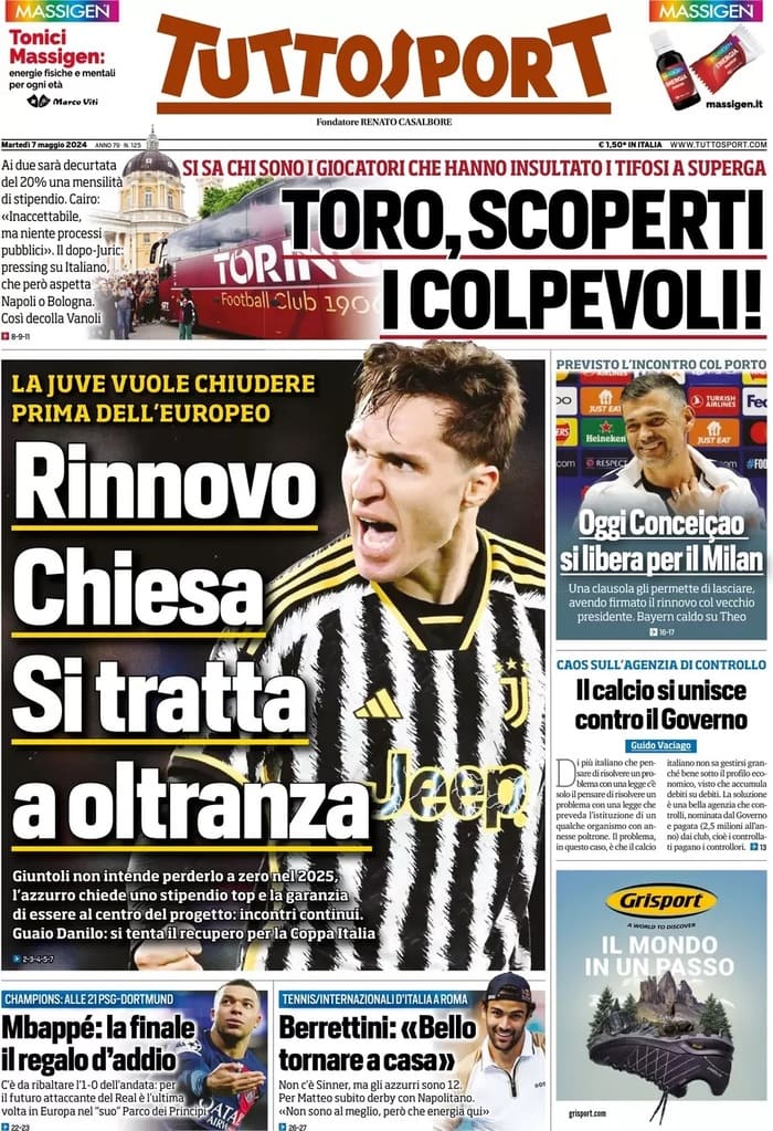 PRIMA PAGINA TUTTOSPORT - Toro, scoperti i colpevoli! Rinnovo Chiesa, si tratta a oltranza