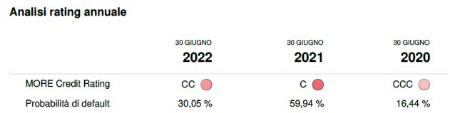Rating CCC, C e CC con probabilità di default (al 2022) pari al 30%!