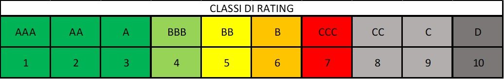 L’output del modello consiste in un punteggio, un voto, il rating appunto, che così come a scuola varia su una scala che di solito va da 1-AAA (il voto migliore) a 10-D (il peggiore) e che determina la promozione o la bocciatura dell’azienda.