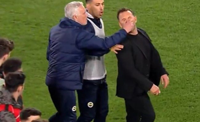 Ma non è finita, Josè Mourinho raggiunge Okan Buruk. Il portoghese, in maniera clamorosa, allunga la mano destro e pizzica il naso dell'altro allenatore. Il tocco c'è, probabile che arrivi pure una squalifica. Ma il tocco non sembra così forte da far crollare Okan Buruk, che invece crolla al suolo. Vola giù anche sotto gli occhi di uno stupito Mourinho. Qualcuno tira via lo Special One, qualcun altro soccorre l'altro allenatore. Attimi di enorme tensione.