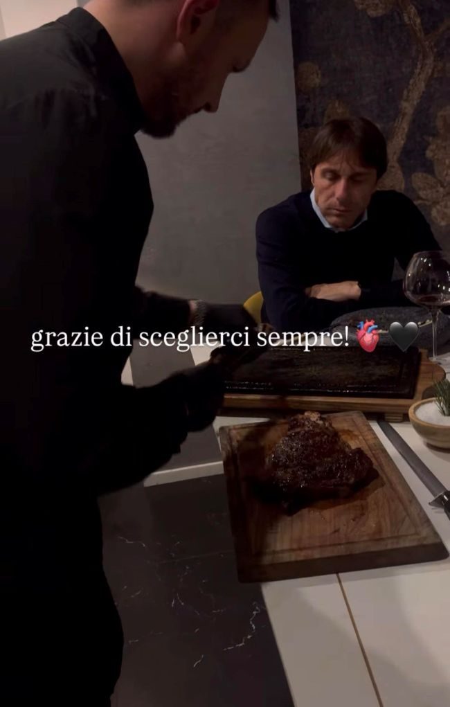 Conte si rilassa prima di Napoli-Roma: cena a base di carne per il mister (FOTO)