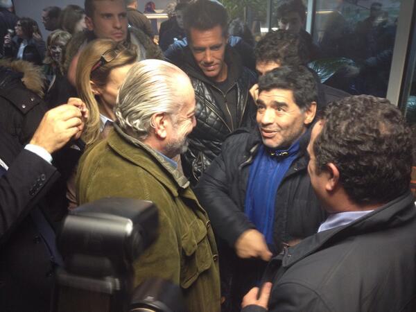 All'inizio del secondo tempo di Napoli-Roma, sul risultato di 1-0 per gli azzurri, Diego Armando Maradona torna al San Paolo per vedere la "sua" squadra trionfare sui capitolini e conquistare la finale di Coppa Italia, dove gli azzurri si batteranno con la Fiorentina. "Questa sera abbiamo un ospite importante... Diego è con noi per tifare Napoli!", ha scritto sul suo profilo Twitter il Presidente del Napoli, Aurelio De Laurentiis allegando la seguente foto: