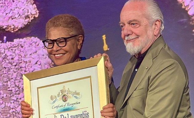 La serata è andata oltre la semplice anteprima cinematografica: durante l’evento la sindaca di Los Angeles Karen Bass ha conferito ad Aurelio De Laurentiis la cittadinanza onoraria della città, riconoscendo i suoi meriti imprenditoriali sia nel mondo del cinema che in quello del calcio. Un riconoscimento che unisce idealmente la passione azzurra con l’industria dell’entertainment hollywoodiana.