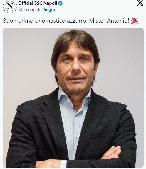"Buon primo onomastico, Mister Antonio!" si legge infatti su 'X'. Intanto, Conte si immerge completamente nel lavoro: anche in un giorno per lui speciale, pensa al Napoli che potrà costruire insieme a Giovanni Manna ed Andrea Chiavelli, ai quali il presidente ha affidato il compito di modellare una rosa che possa essere ancora più competitiva delle precedenti e che possa lottare nuovamente per i piani più alti della classifica a partire dalla prossima stagione di Serie A.