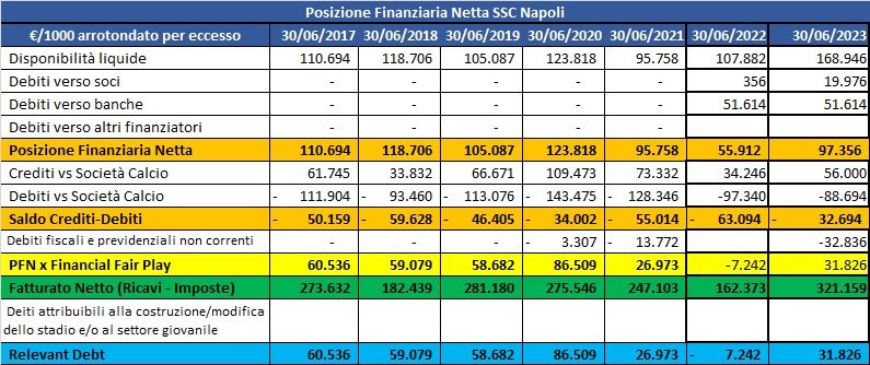 Nell’ultima settimana abbiamo magnificato il risultato economico della gestione 2022-2023: l’utile di 80 milioni di euro, il guadagno di un anno di gestione. E’ un dato sicuramente determinante per garantire la sostenibilità a certi livelli. Ma c’è una evidenza che per un analista finanziario è ancora più importante: la cassa .