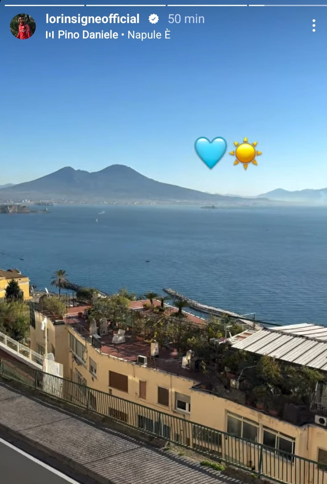 In questi giorni di festa, Lorenzo è tornato a Napoli e si sta godendo le bellezze che solo il capoluogo campano sa offrire. Attraverso i suoi canali social ufficiali, infatti, Insigne ha pubblicato una splendida immagine con un panorama suggestivo: uno scorcio che mostra il mare ed il Vesuvio in lontananza. Il tutto, accompagnato dalle note di 'Napule è', uno dei brani più iconici scritti dall'indimenticato Pino Daniele.