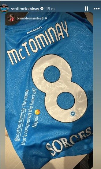 Uno dei calciatori più importanti dei Red Devils ha ricevuto in dono da Scott McTominay la sua maglia del Napoli con il numero 8.