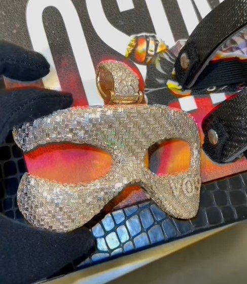 Un'immagine potente, come da "super calciatore" mascherato, arrivata ad ispirare persino Benny The jeweler, gioielliere di New York che ha voluto creare una versione preziosissima della maschera di Osimhen, prima a grandezza naturale (oltre 275 carati di smeraldi baguette e diamanti marquise) e poi in versione più piccola, a mo' di ciondolo, utilizzabile ad esempio per abbellire una borsa. A seguire, vi mostriamo le immagini pubblicate sui social:
