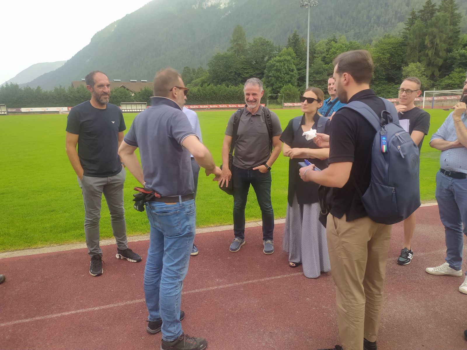 Lo staff di Antonio Conte a Dimaro Folgarida, sede del ritiro estivo della SSC Napoli. Con il vice Cristian Stellini, sono giunti in Val di Sole anche il preparatore atletico Costantino Coratti e il collaboratore della segreteria sportiva Paolo Rea, affiancati da Erinda Gorenca (Head of Partnership, Marketing Activations & Players, Image Rights) e da Gianluca Baiesi (Stadium Manager). Ad accoglierli, tra gli altri, il sindaco Andrea Lazzaroni con gli assessori Alessandro Fantelli e Radia Ramponi, il comandante della Polizia Locale Fabio Arnoldi, il direttore dell’Apt Val di Sole Fabio Sacco con lo staff e Paolo Dallapè, il mago del tappeto erboso che da giorni ha iniziato il lavoro di cura e manutenzione dell’erba per far trovare al nuovo tecnico azzurro una struttura degna di un grande club. Come peraltro è tradizione in Trentino già sede dei ritiri, tra gli altri, del prestigioso Bayern Monaco e di tre quarti delle squadre di A e B.