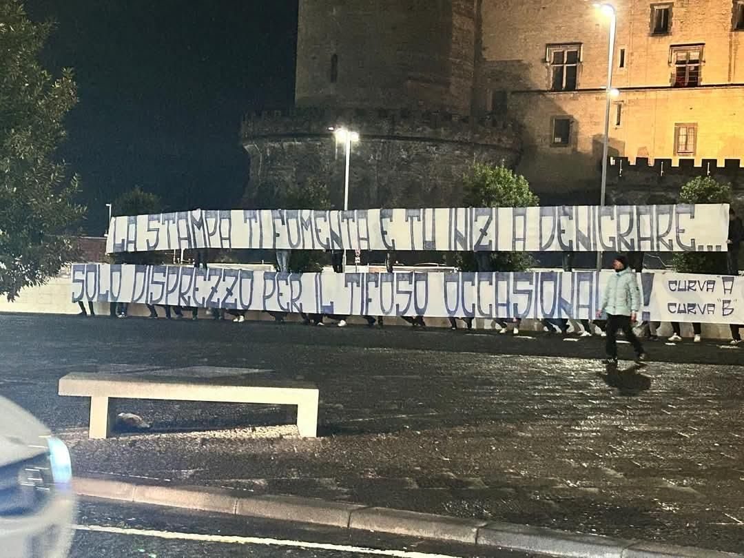 Ultras Napoli, striscione all'esterno del Maschio Angioino: nel mirino giornalisti e tifosi occasionali (FOTO)