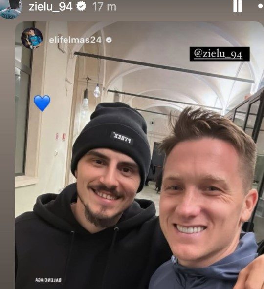 Piotr Zielinski, centrocampista polacco dell'Inter ed Eljif Elmas, nuovo calciatore del Torino (arrivato nel mercato di gennaio e già in gol seppure nella sconfitta contro il Bologna), hanno postato sui social una foto che li ritrae insieme sorridenti.